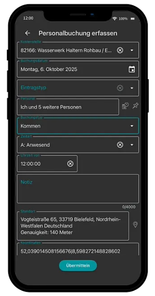 - Arbeitszeiten direkt auf der Baustelle dokumentieren