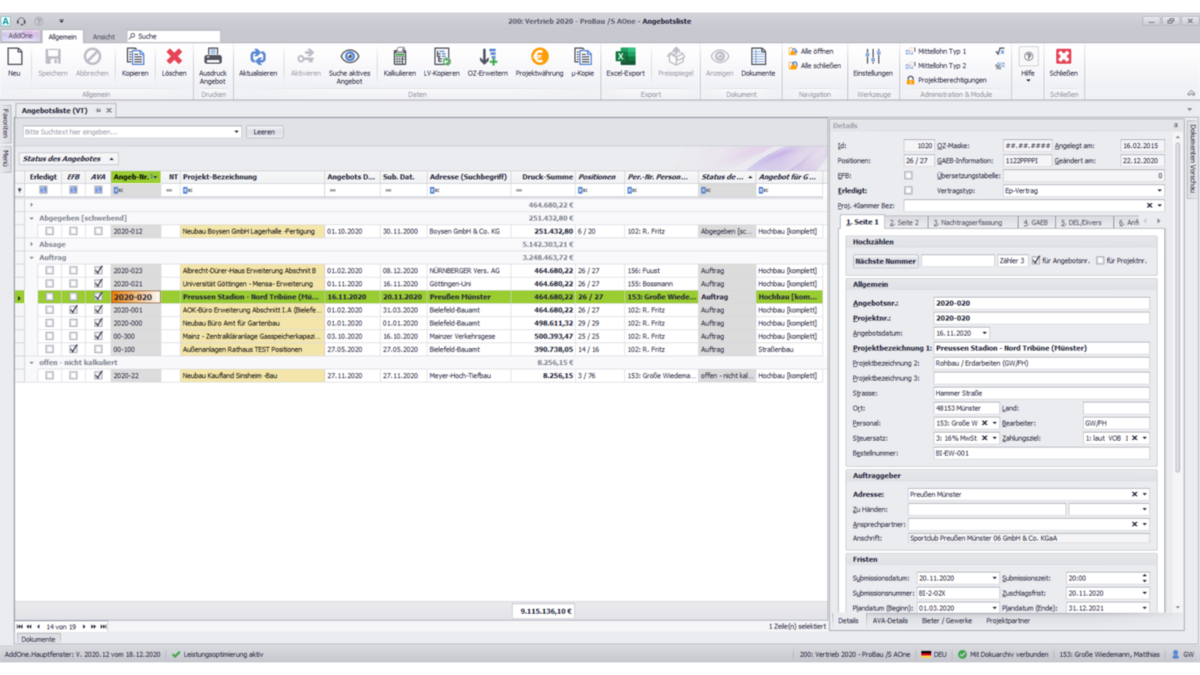 Bautechnische Abläufe sind das Rückgrat eines jeden Bauprojekts. Mit der Bautechnik-Software von Pro-Bau/S® AddOne steuern Bauunternehmen, Generalunternehmer und Bauträger ihre Projekte zentral, strukturiert und digital – von der Mengenermittlung bis zur Ressourcendisposition (elektronische Plantafel). Die Software verknüpft technische Prozesse mit kaufmännischen Abläufen und schafft eine klare Grundlage für alle Beteiligten.