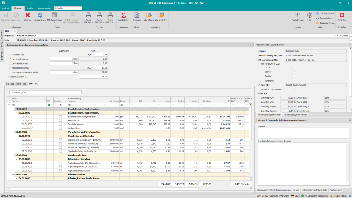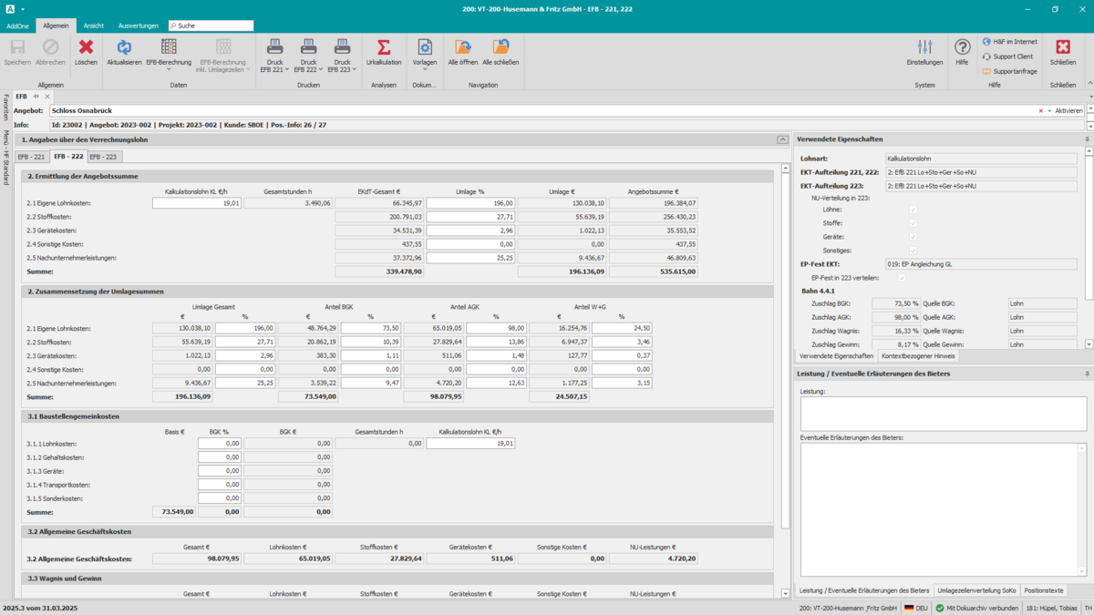 EFB 222 – Zuschläge & Baustellengemeinkosten
