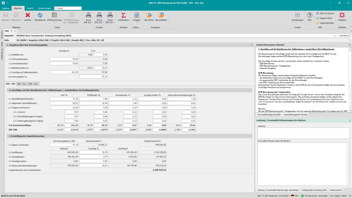 EFB 222 zeigt die Ermittlung von Zuschlägen und Baustellengemeinkosten.